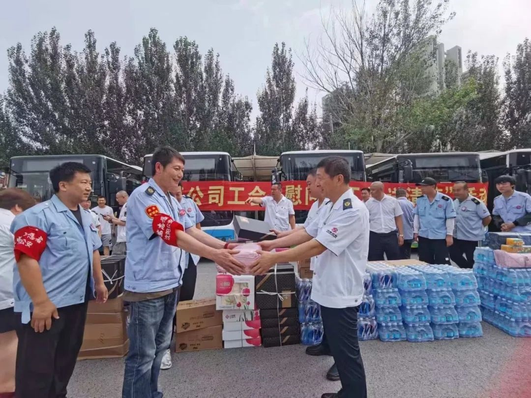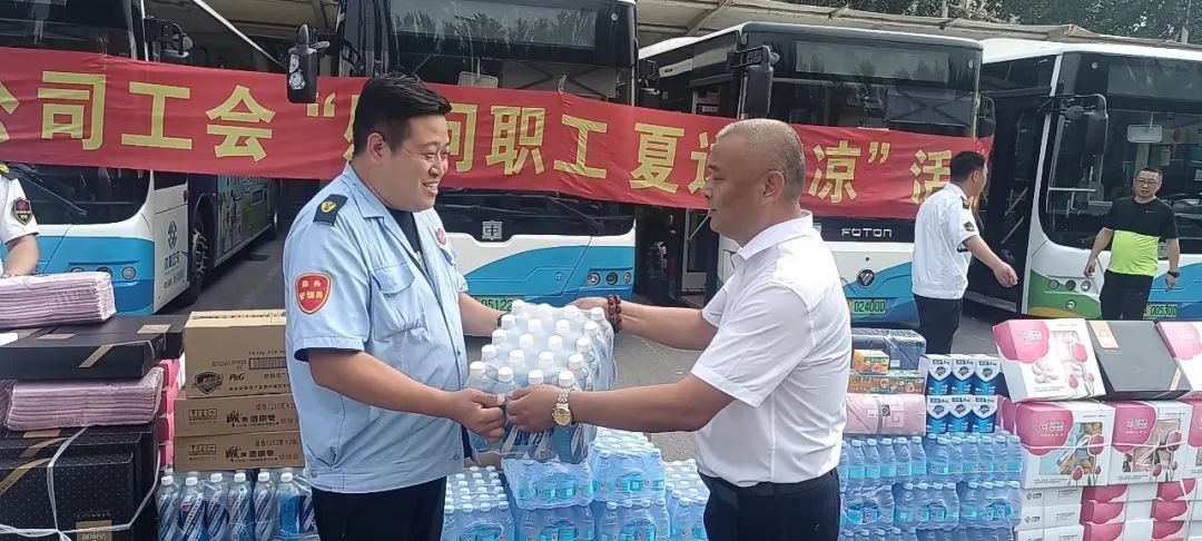 黃河公司心系職工,7月23日下午,公司負(fù)責(zé)人來到西江街公交樞紐站開展“慰問職工 夏送清涼”活動(dòng),將“清涼”送到運(yùn)營(yíng)一線,送到職工的心坎上。