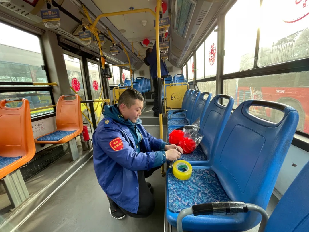 據(jù)了解,元旦前夕,沈陽(yáng)客運(yùn)集團(tuán)按照全市“我是雷鋒”——沈陽(yáng)市窗口行業(yè)文明誠(chéng)信服務(wù)寵客(qiě)行動(dòng)工作安排,落實(shí)全市“雙節(jié)”節(jié)日氛圍布置工作要求,積極開(kāi)展“布置車廂,扮靚沈陽(yáng)”行動(dòng),各車隊(duì)利用行車間歇和休息時(shí)間裝扮車輛,懸掛新年拉花、紅燈籠,張貼新年窗花及融入“蛇年”元素的貼紙等。目前,已有1188臺(tái)途經(jīng)主要街路、景區(qū)、商業(yè)街區(qū)的公交車輛完成了裝飾,車內(nèi)年味十足,客運(yùn)集團(tuán)計(jì)劃在春節(jié)之前完成全部運(yùn)營(yíng)車輛的裝飾布置工作。