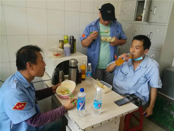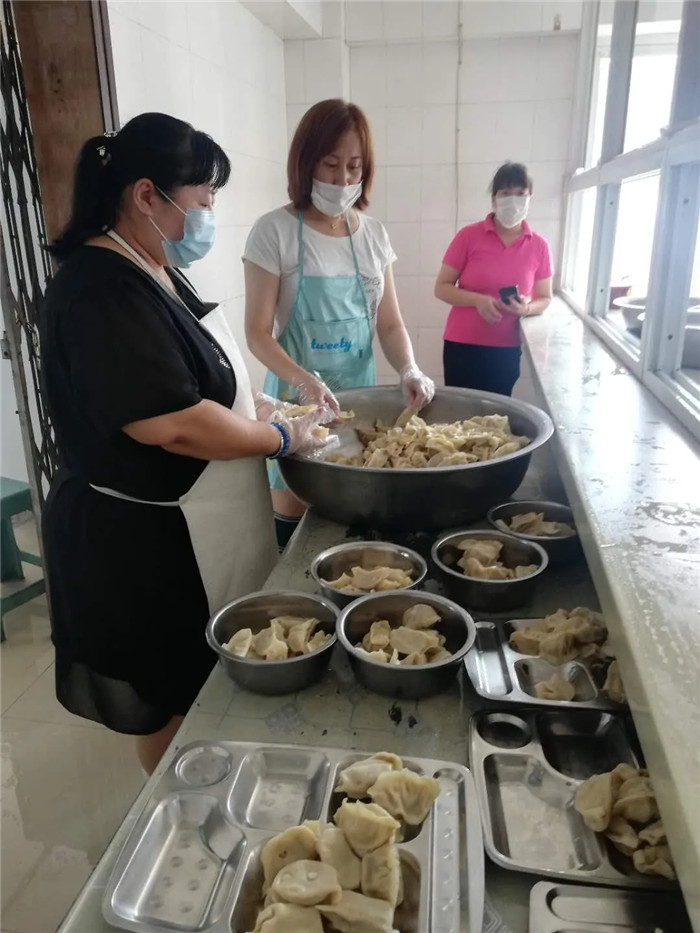 和面、洗菜、剁餡、和餡,各線路食堂一大早便開始為中午的餃子午餐忙活了起來,很多駕駛員利用站停休息時(shí)間也紛紛參與其中。大家邊聊天邊干活,在歡樂、祥和、輕松的氛圍中,一盤盤香氣撲鼻的餃子端上了餐桌,搭配上綠豆水、西瓜、礦泉水等防暑降溫品,營造了“黃河公司一家親”的和諧氛圍。