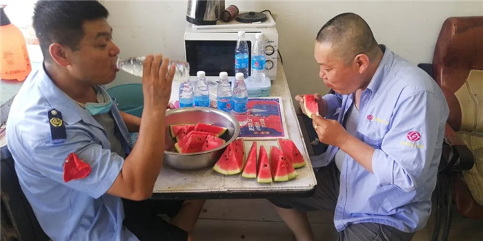 康利公司各車隊(duì)為駕駛員準(zhǔn)備了豐盛的午餐——餃子,為了給駕駛員防暑降溫、緩解疲勞,準(zhǔn)備了冰鎮(zhèn)西瓜和冰鎮(zhèn)礦泉水。同時(shí)也叮囑駕駛員要注意休息,保證身心健康。